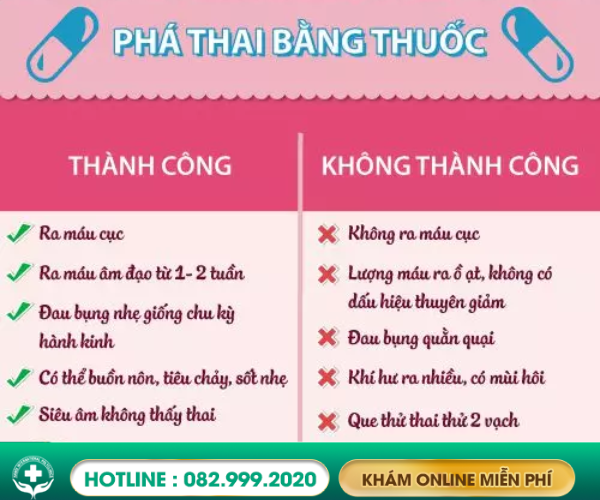 DẤU HIỆU ĐÌNH CHỈ THAI NGHÉN BẰNG THUỐC THÀNH CÔNG
