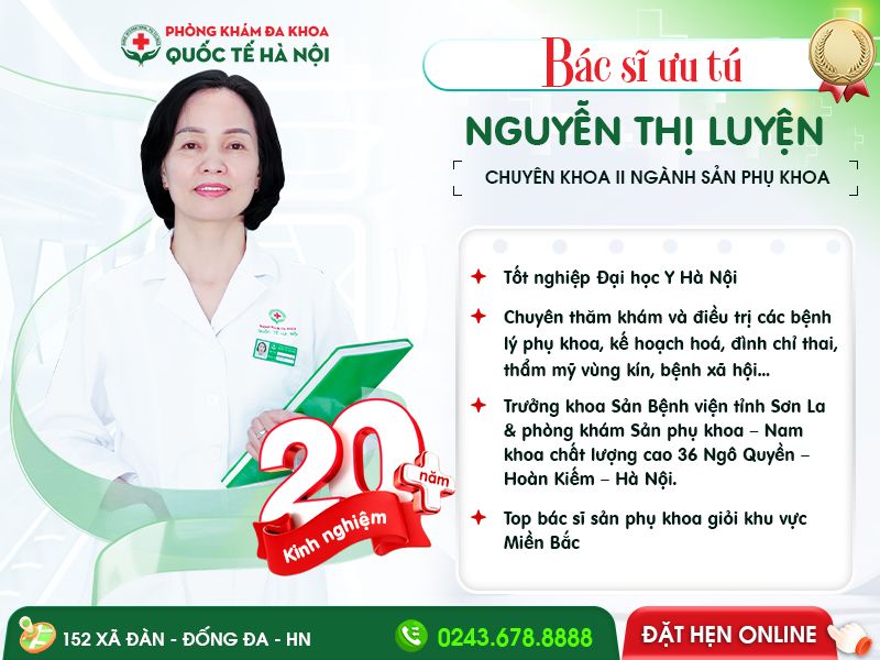- Bác sĩ CKII Sản phụ khoa Nguyễn Thị Luyện với hơn 20 năm kinh nghiệm, về khám phụ khoa, khám thai, đình chỉ thai, tư vấn kế hoạch hóa gia đình, hỗ trợ điều trị bệnh phụ khoa, bệnh xã hội cho nữ giới. ➨Nhận tư vấn, đặt lịch hẹn với bác sĩ Luyện [Tại đây]