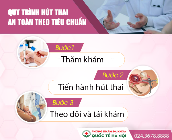 Hút thai phải tuân theo đúng quy trình tiêu chuẩn của Bộ y tế để tránh những biến chứng không đáng có. Theo đó, quy trình hút thai chuẩn bao gồm các bước sau: