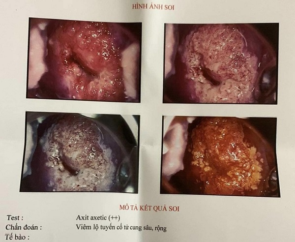 - Soi cổ tử cung – máy nội soi hiện đại – đánh giá mức độ tổn thương lộ tuyến.