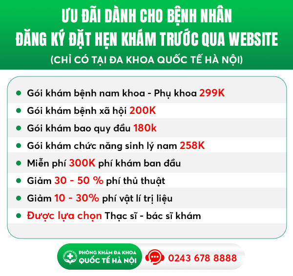 NHẤN MẠNH: ưu đãi chỉ dành cho khách hàng đặt hẹn khám trước. Không đặt hẹn sẽ phải thanh toán 100% chi phí gốc. ➡ Click đặt hẹn nhận ưu đãi Tại đây! hoặc qua khung chat: