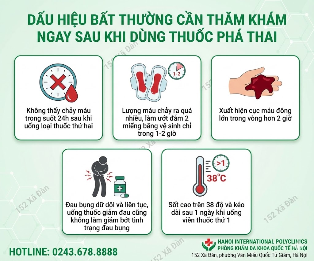 Đây cũng là lý do các bác sĩ luôn khuyến cáo: trước khi quyết định phá thai bằng thuốc, việc kiểm tra tuổi thai và tình trạng sức khỏe là bước quan trọng giúp đảm bảo an toàn và bảo vệ khả năng sinh sản về sau.