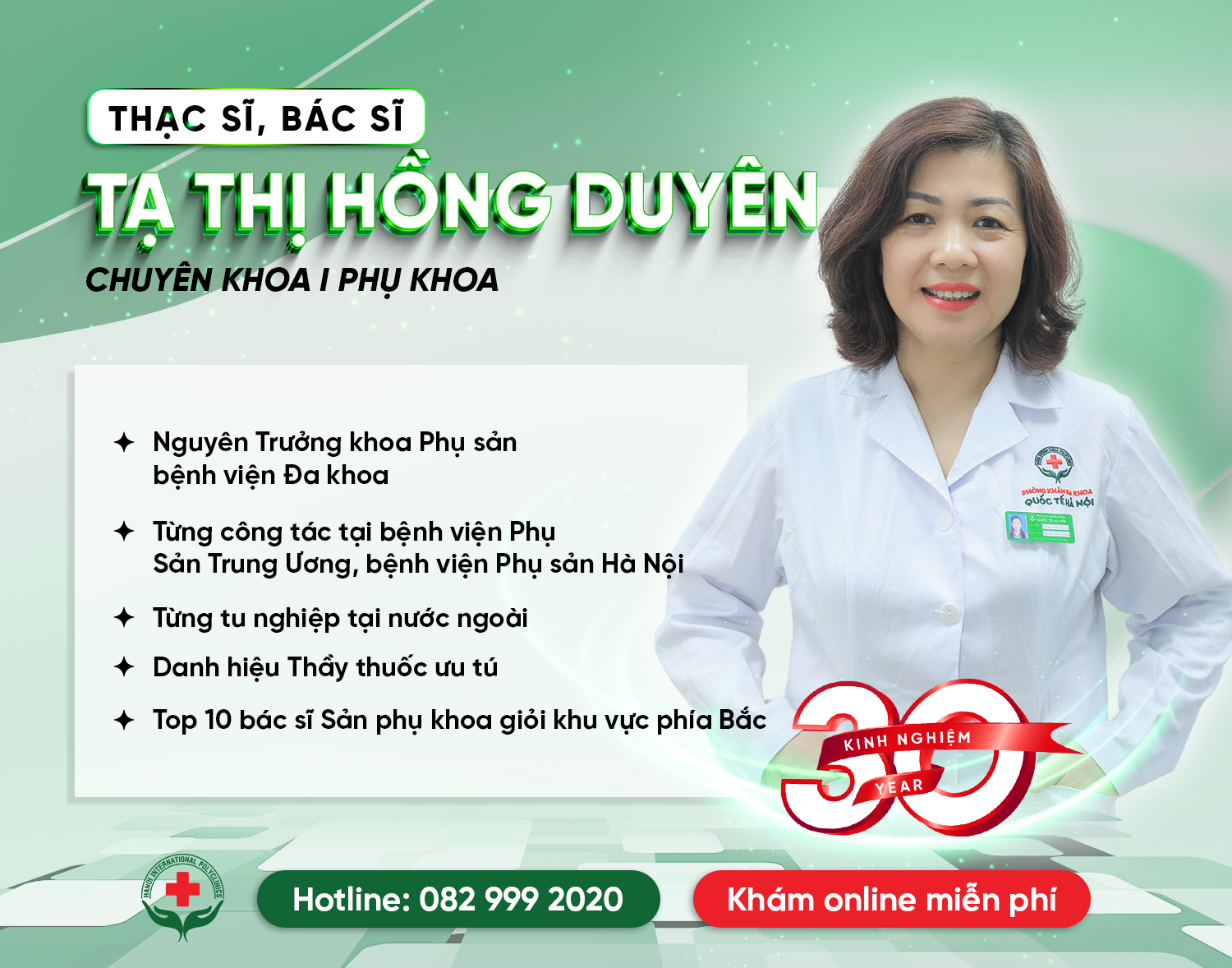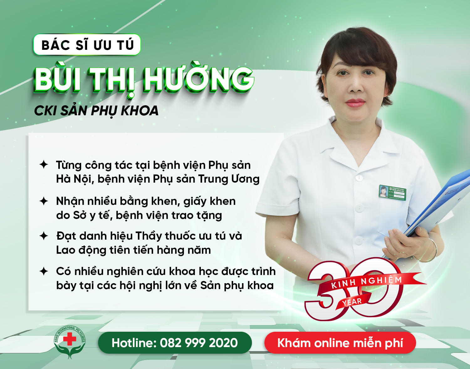 - Có 30 năm kinh nghiệm công tác trong lĩnh vực sản phụ khoa